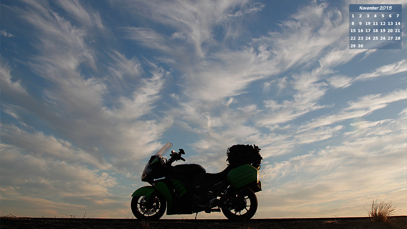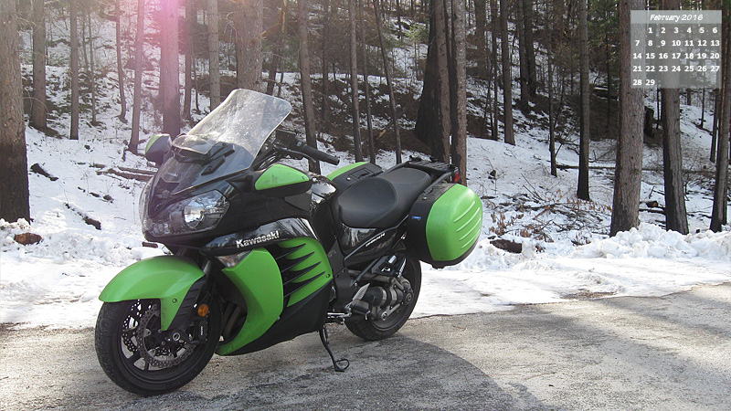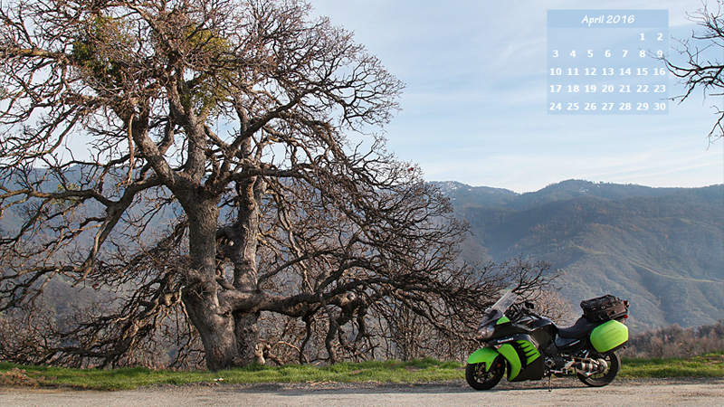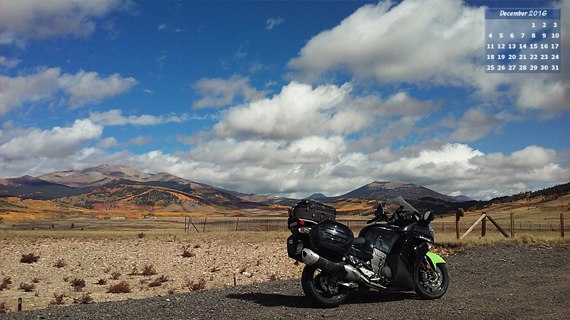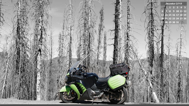 Since bringing my 2015 Concours 14 home in June 2015, I've been making a wallpaper every month for my computers from my recent rides. It helps me daydream about riding while I'm working. I've posted them below - each with a calendar for that month and without the calendar. If you would like to use them for a wallpaper here they are.
